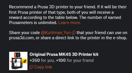 In case you want to purchase 3D printer from Prusa as well, you can use my nick "@Kutilman_Yuri" as a promo code during purchase, so both of us receive a bonus ;)